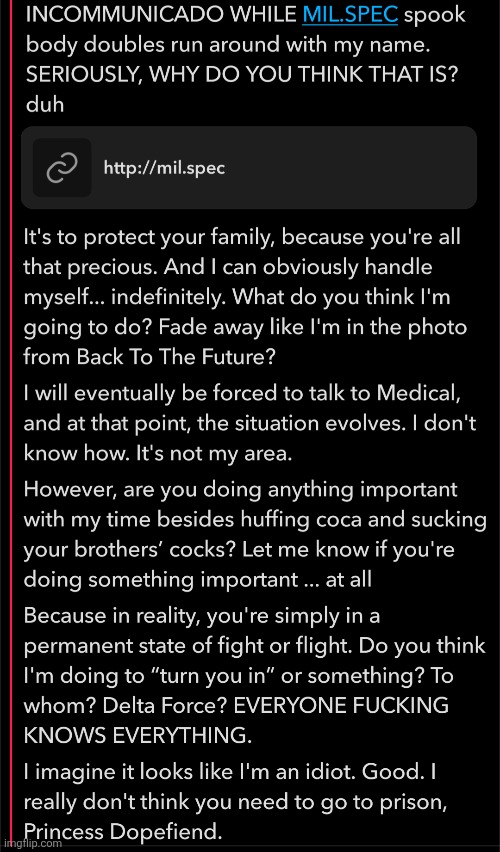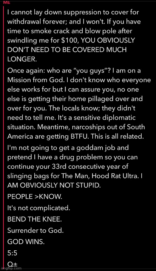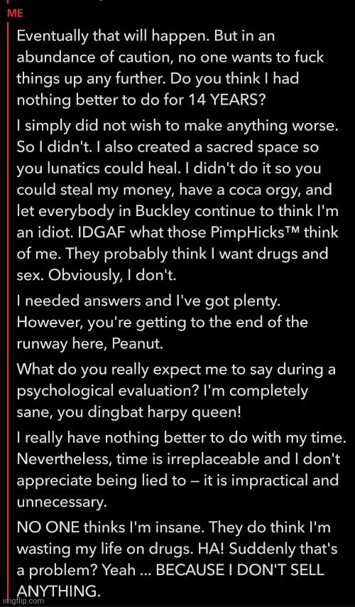 When an abuser's pattern of self-abuse becomes abusive to themselves and everyone else around them, at that point, intervention is called for; and is absolutely mandatory. The cycle of destruction becomes LOCKED IN; with NO WAY OUT; and unsurprisingly... those in a position of Command Authority are de-incentivized to stop exploiting a steady and mostly reliable earning source of off-book income -or- to bother considering defending the civil rights of one, lone hung angry man.”