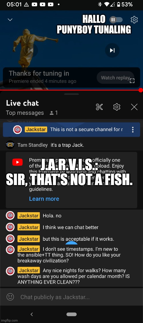 Remember I said I disagreed with the decisions you made? Well, this is why: you kinda pissed off a lot of people, and NOT ONE PERSON thinks I did ANY of the shit you keep claiming I did. Do you get it? People admire me, not because I have a better botfleet... but because I have consistently lived a fairly decent life... and I have never had to run game on someone to get them to accept a person with an STD in their bed. I'd probably just have sex with them myself... and wow, I guess I know why (PROT) thought I was so pissed, trying to kill her, et cetera. It's because you morons lied to her, and I guess she thought I was supposed to do something extra-special after she threw a stick at my head? Why was I at that house anyway? Yeah, well... I don't need to know.