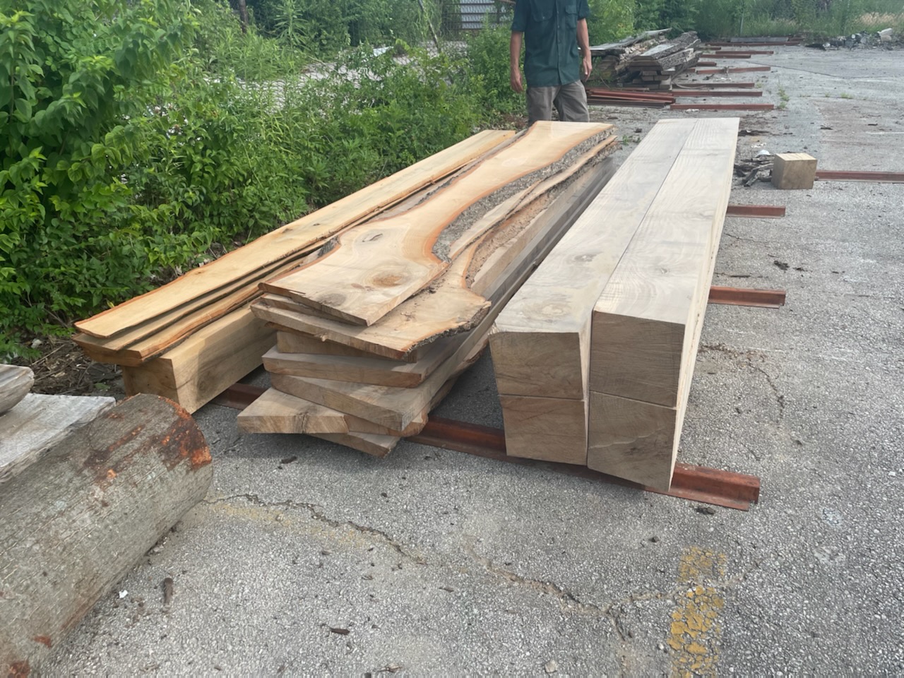 Right now, I have to "stick and stack" everything in a neat little pile and make sure the base is completely level (unless I want a bunch of warped boards) and let it air dry for a few years.  I'm putting the beams on top of it all for weight.